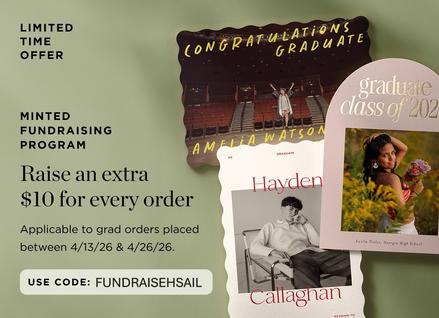 Starting today, HSA get 20% off all grad orders, and Minted donates an extra $10 for every order placed using our unique code FUNDRAISEHSAIL. From graduation announcements to thoughtful gifts, every purchase supports our school. This offer ends April 26th!